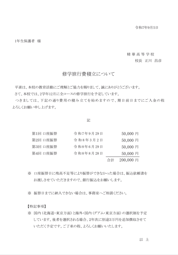 9月8日に大阪府 奨学のための給付金(通常制度・家計急変制度)についてを配布しました。