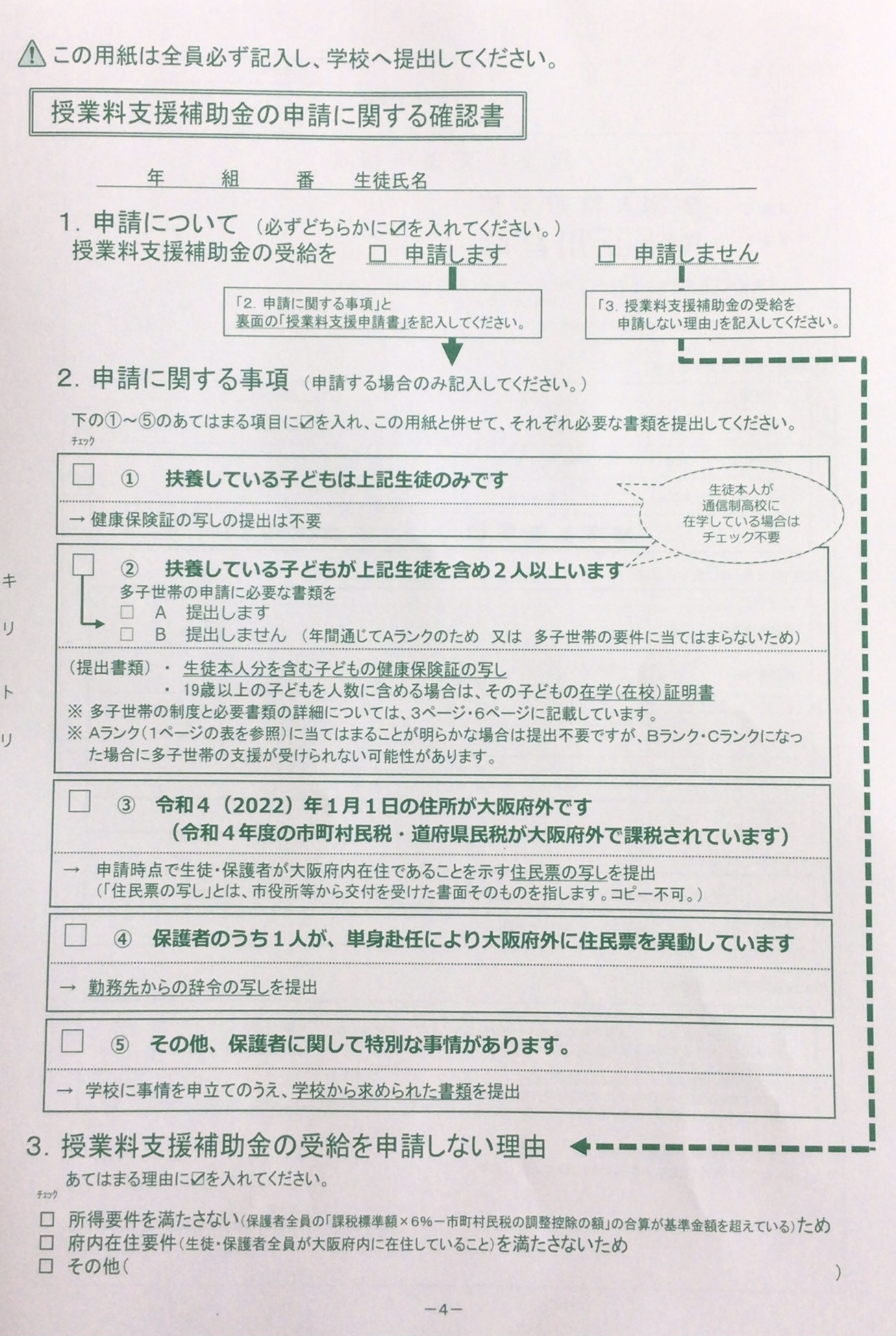 授業料支援補助金の申請に関する確認書は全員の記入・提出が必要です。