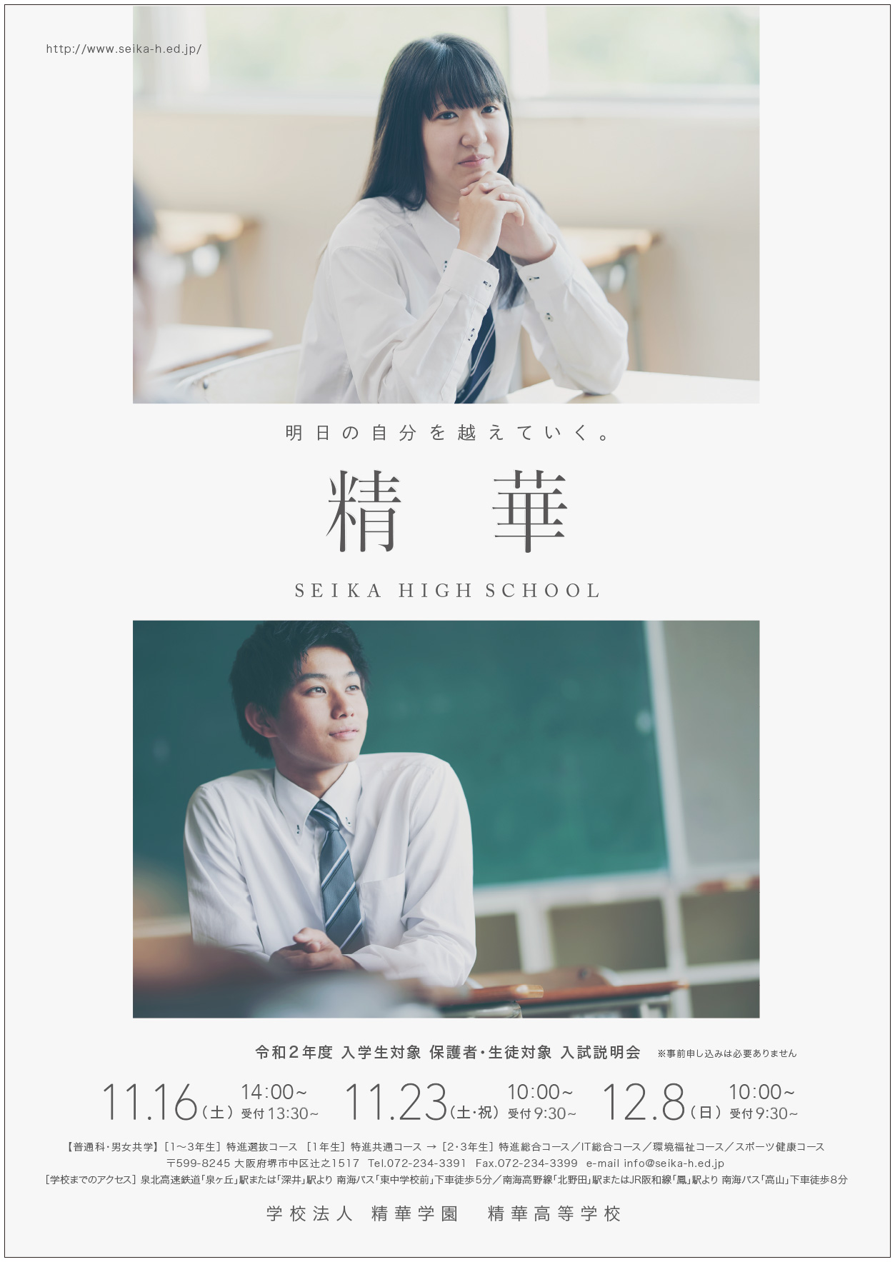 本校では、現在『入試説明会』を準備しています。 詳細はこのホームページにてご案内させていただきますので、今後もどうぞご覧ください。