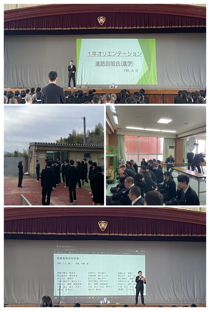 新制服になりましたので、制服のルール確認や、校歌の歌唱指導、高校卒業後を見据えた進路指導に関する説明が行われました。