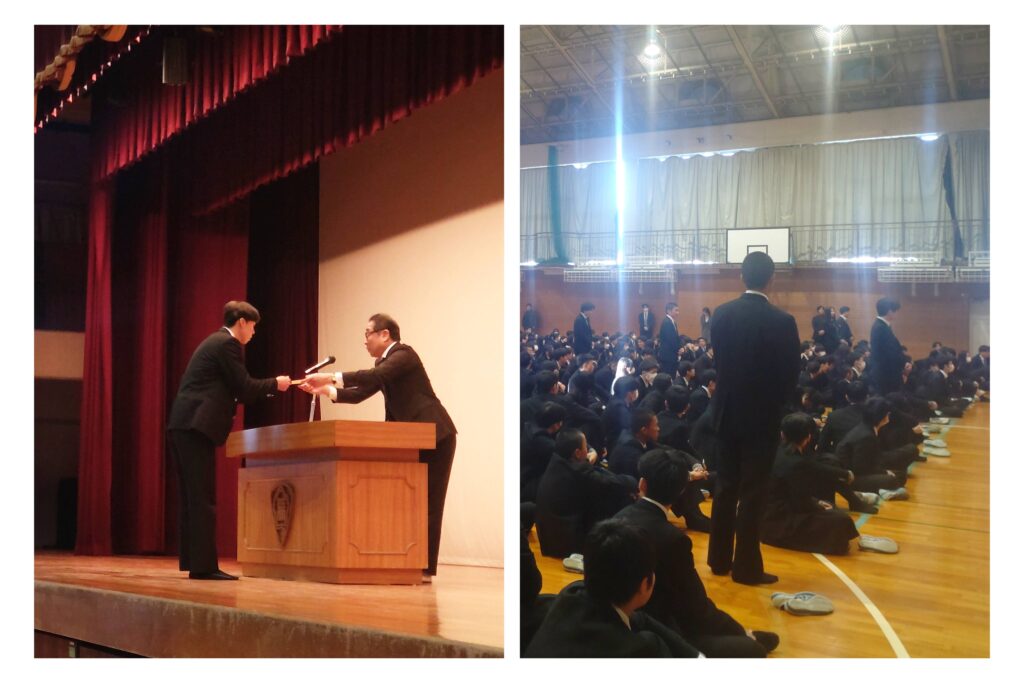 終業式の後、「新体力テスト」A評価の生徒の表彰を行いました。