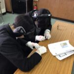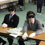また、イヤーマフ・視覚障害ゴーグル・手袋を使用して、高齢者のものの見え方聞こえかた、物をつかむ体験をしました。自分たちのようにスムーズに動くことができないことや、手先が思うように動かせないことを実感していました。