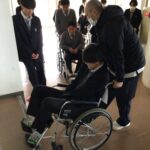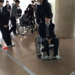 車椅子体験では、車椅子をおすときの気配りや、段差でのおし方などを体験しました。